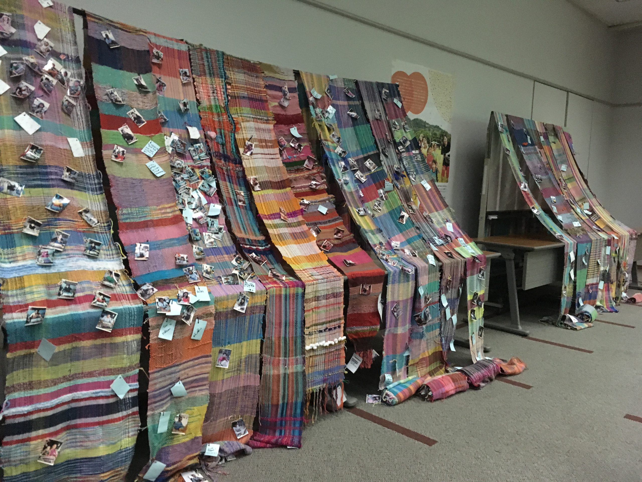 この時に織った学生たちは既に卒業してしまっているのですが。布が再びこのキャンパスに戻ってきました。