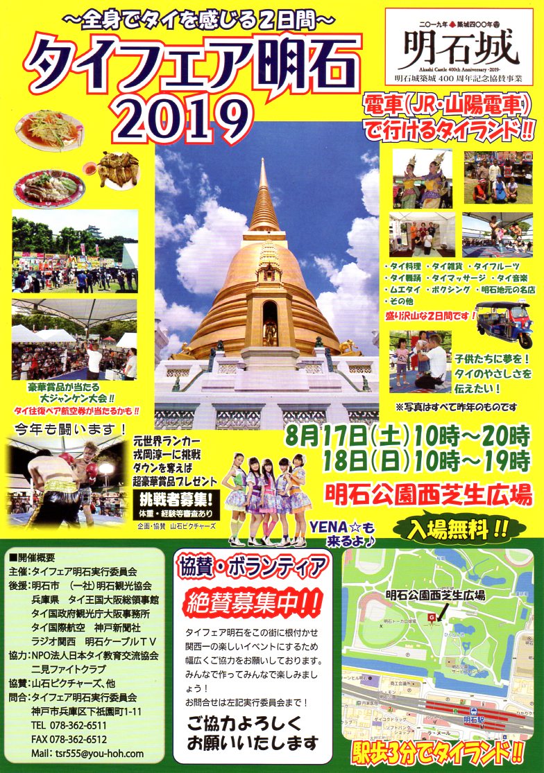 ツナミクラフトでは、8月17日18日に実施するタイフェア明石2019のツナミクラフトブースのボランティアを募集しています。