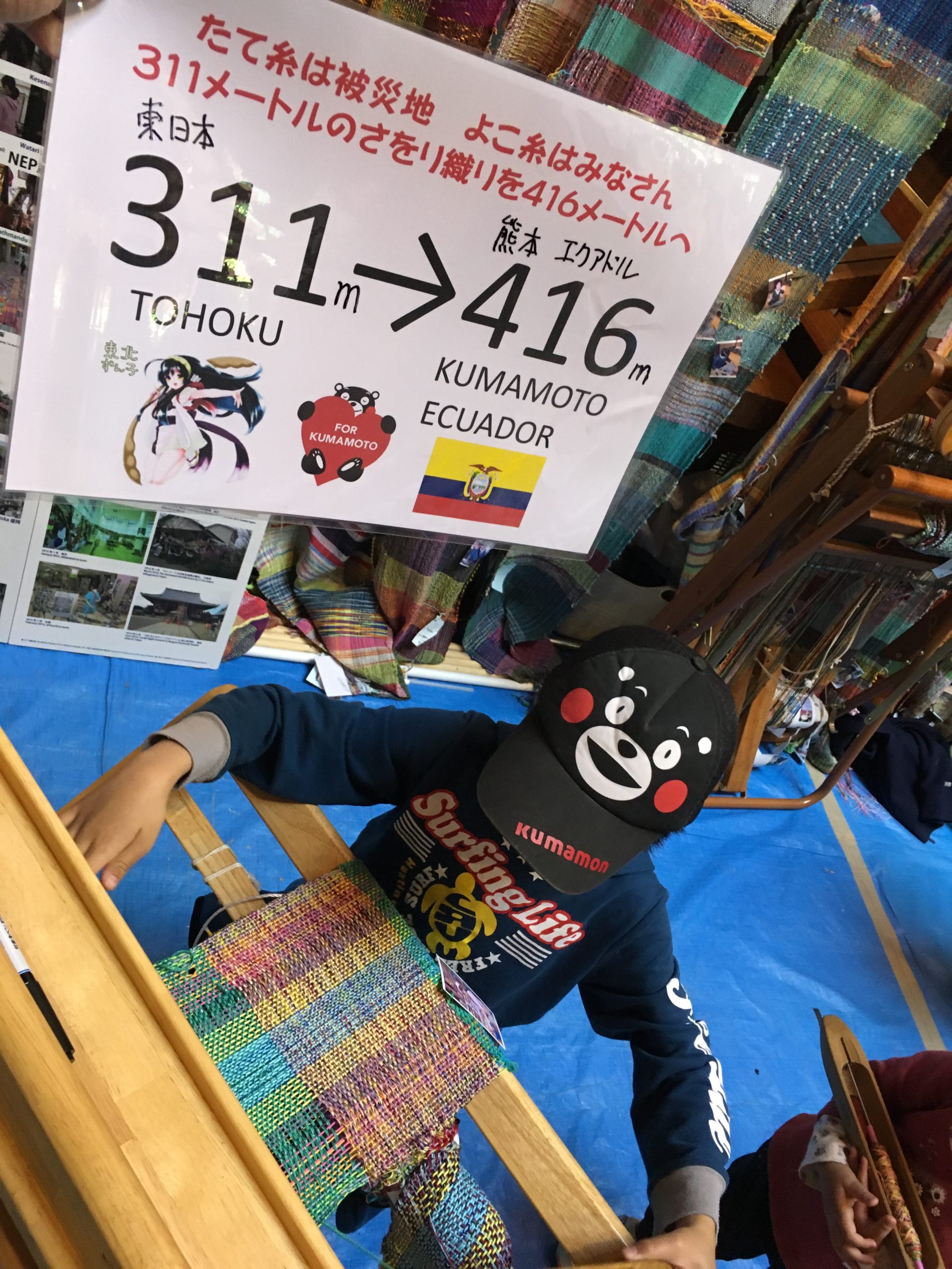 2017年4月23日24日 山口県下関市で開催した「アースデイ関門」にて、被災地をつなぐさをり織りは、熊本地震の発生日に因んだ414メートル、エクアドル地震の発生日に因んだ416メートルをそれぞれ突破しました。